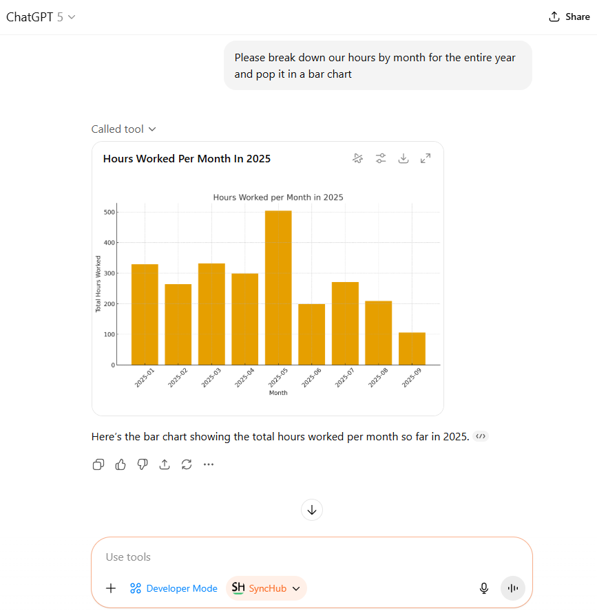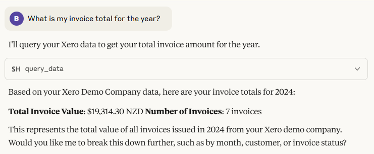 And there you have it! Claude has used the `query_data` tool to query our account and return the requested information.