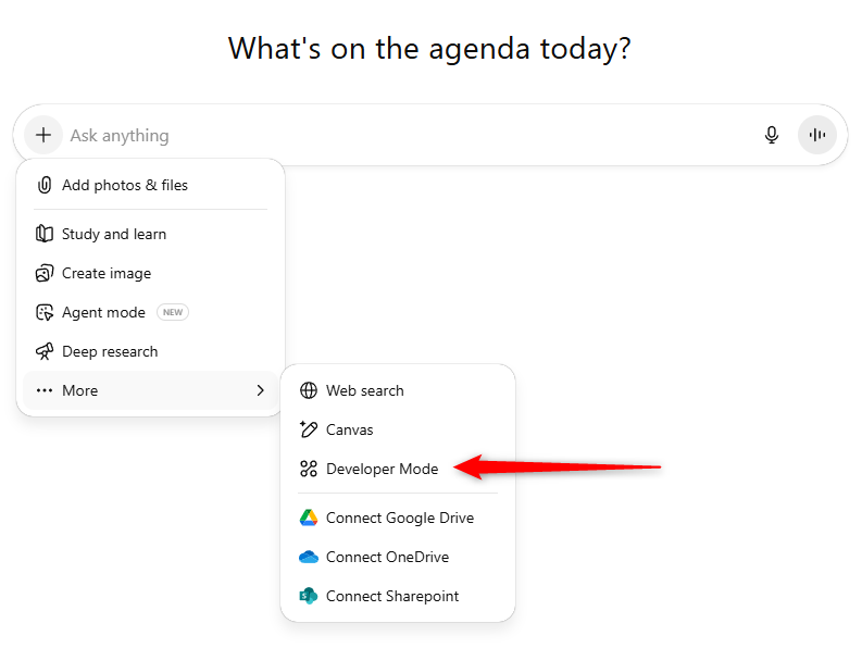 Open a new chat window, then activate _Developer Mode_ via the settings button: